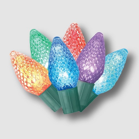 Hofert co 25ct led retro style faceted c9 christmas string lights green wire multi color.